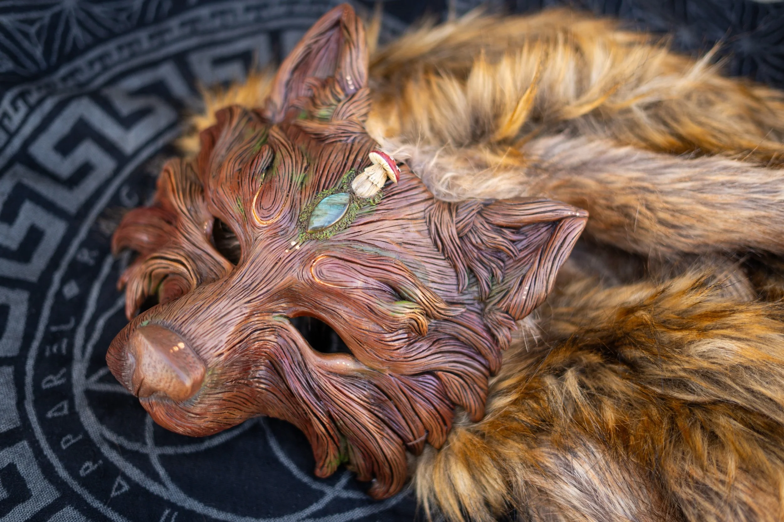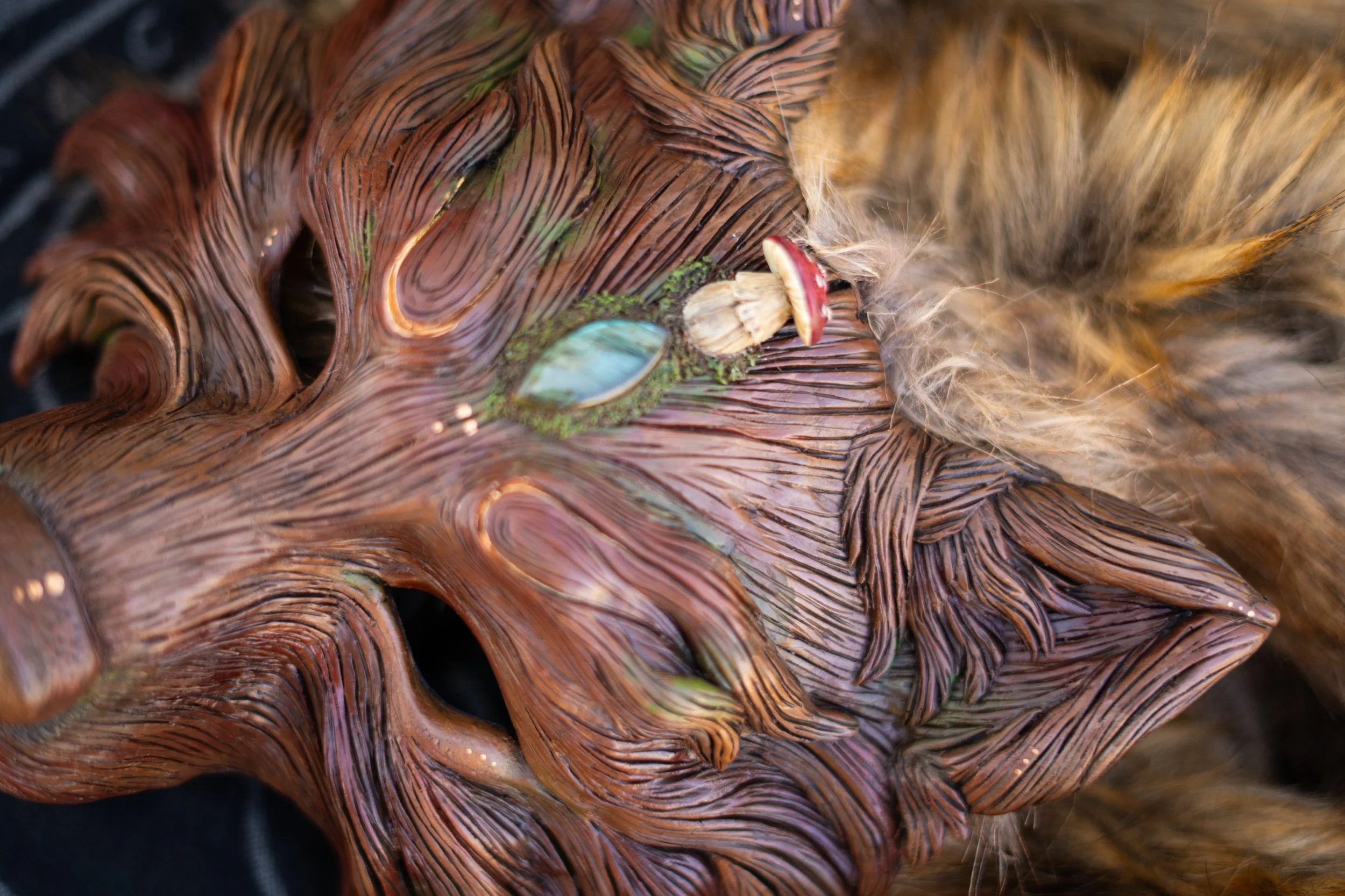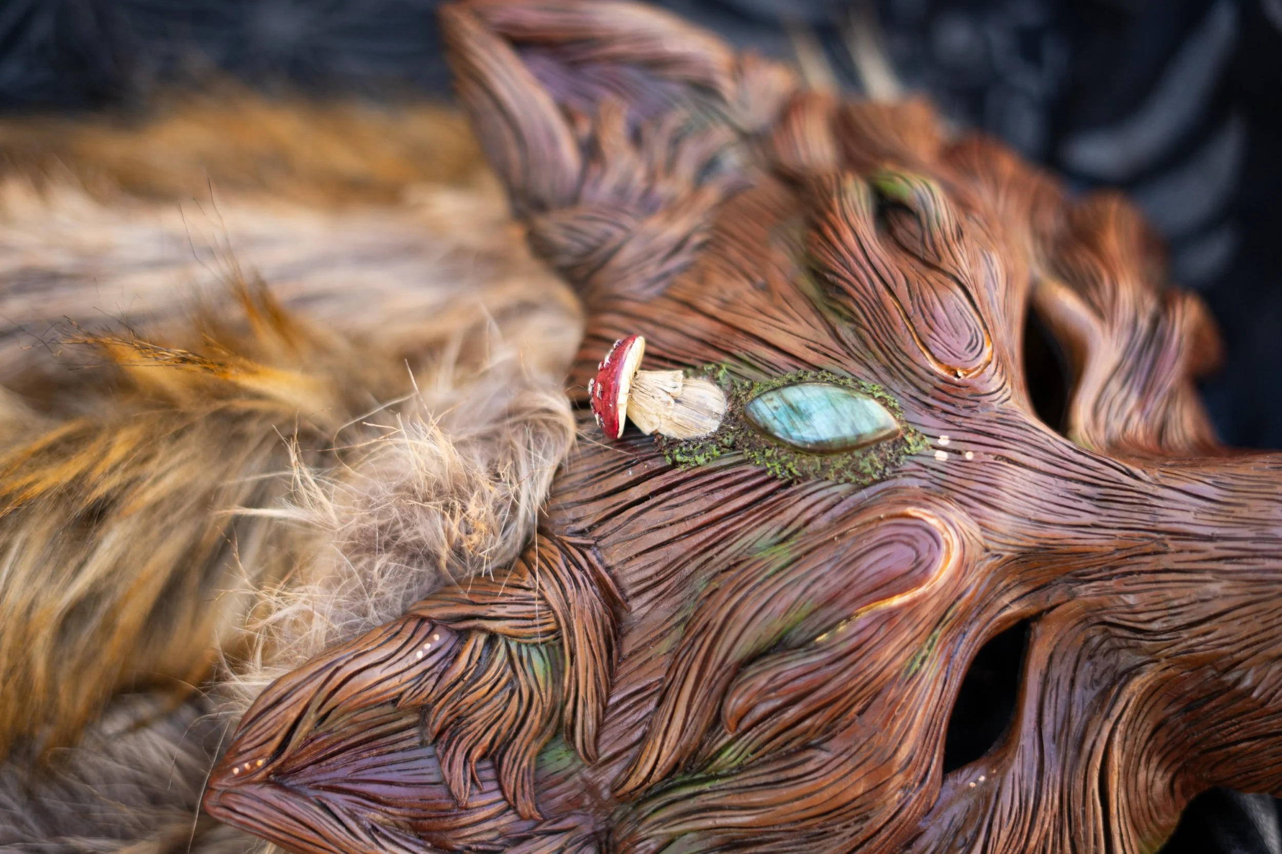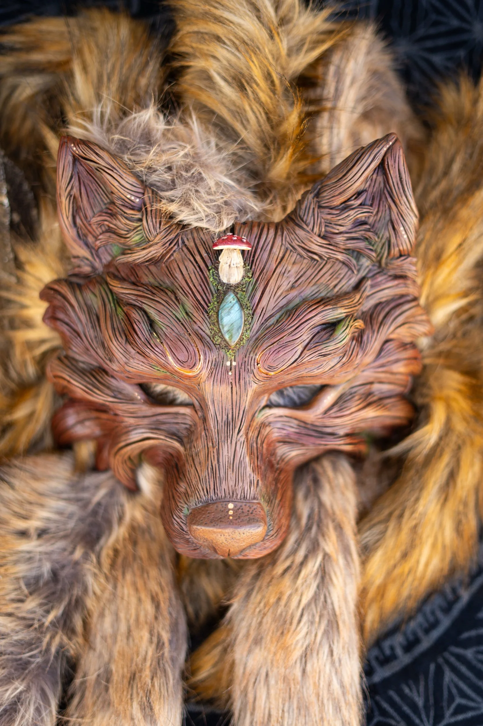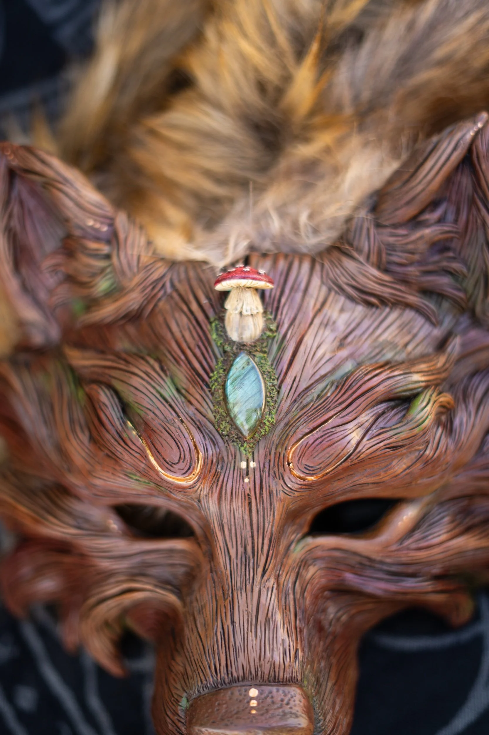 This mask was inspired by the magic of the forest, the magic of mushrooms the scared forest whispers to whom will listen